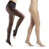 La caratteristica principale di questo tipo di calze è la compressione graduata generata da una particolare lavorazione del filato prodotto in trama tubolare che, attraverso la spinta dal basso verso l’alto, crea un massaggio dei tessuti venosi e linfatici durante la giornata.