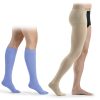 Questo tipo di calze, comprimendo dalla zona sottomalleolare fino al polpaccio o alla coscia, generano una compressione graduata digradante e, attraverso la spinta dal basso verso l’alto del tessuto venoso, creano un massaggio interno dei tessuti muscolari, venosi e linfatici e favoriscono un miglioramento della circolazione sanguigna.
