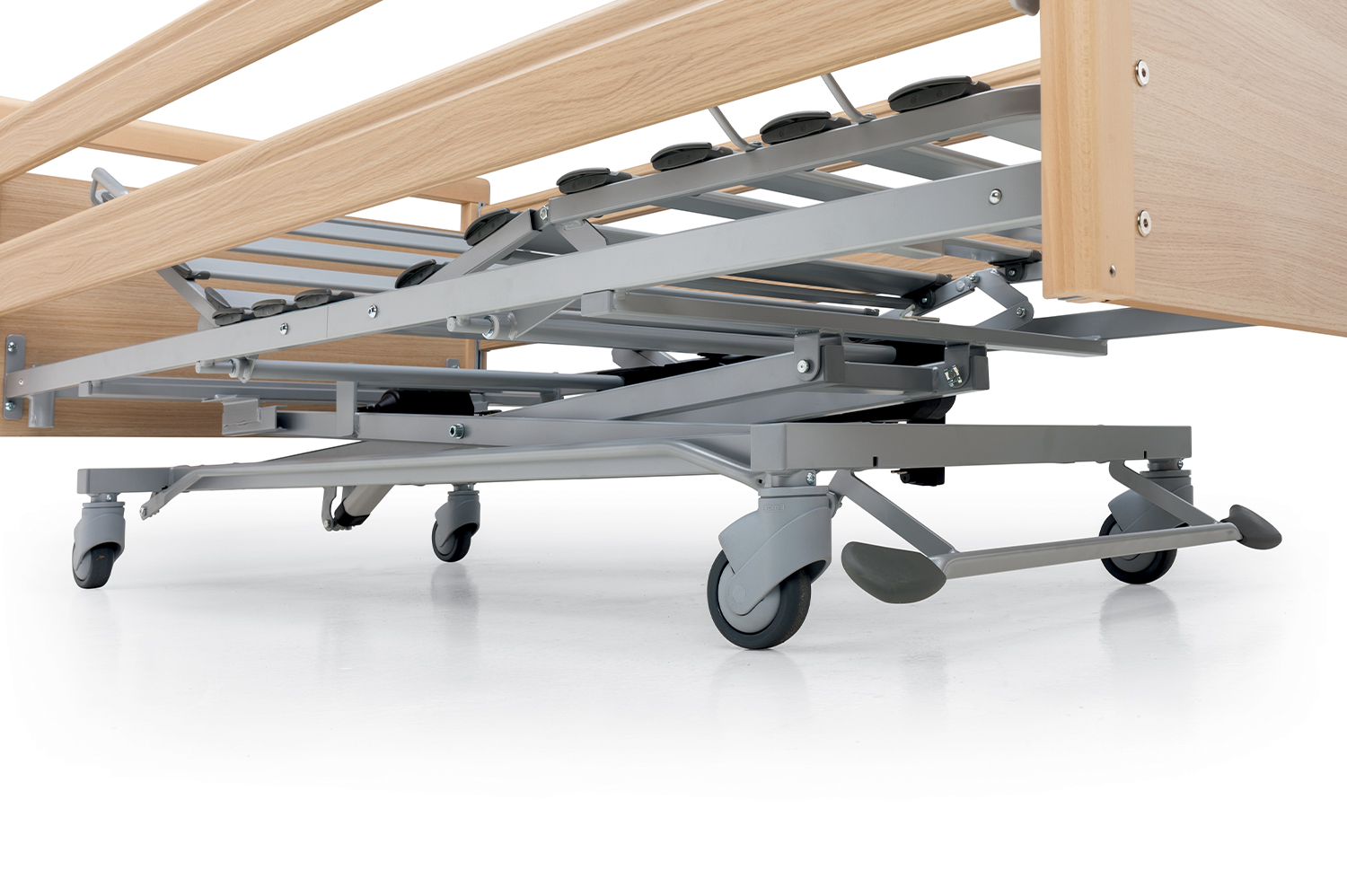 Con ampie regolazioni del piano rete (da 36 cm a 80cm) consente il passaggio ai sollevatori alzapersona per consentire un trasferimento agevolato.